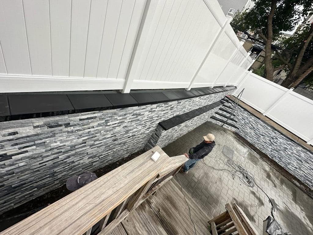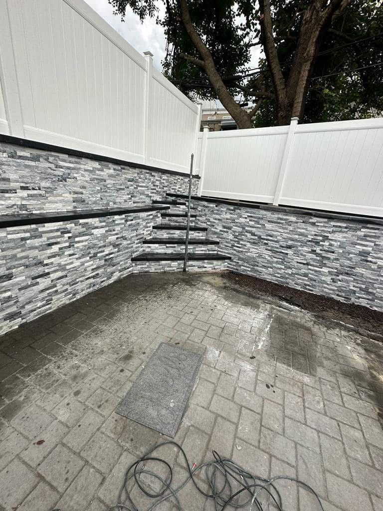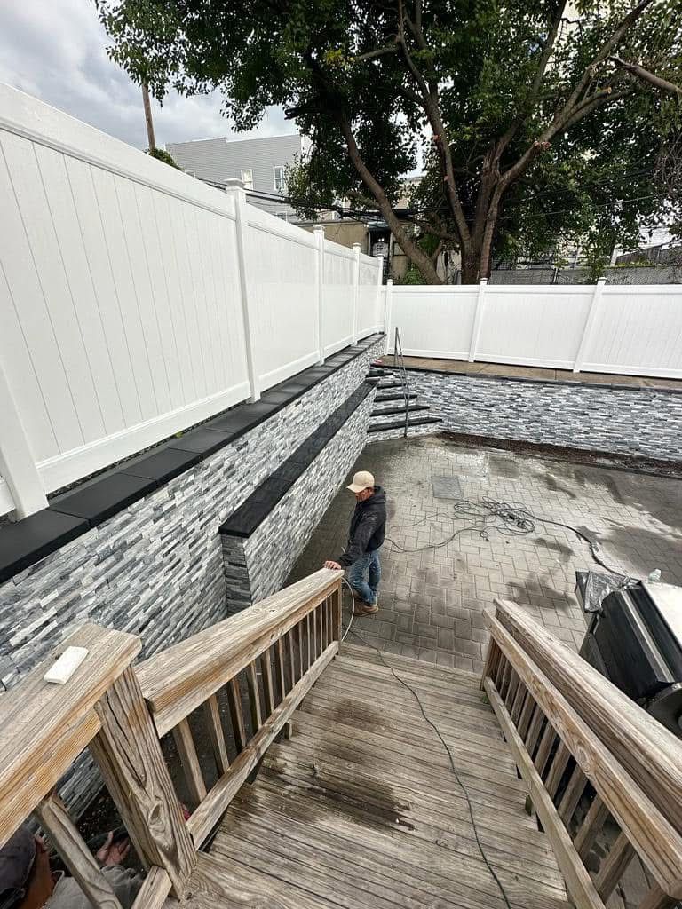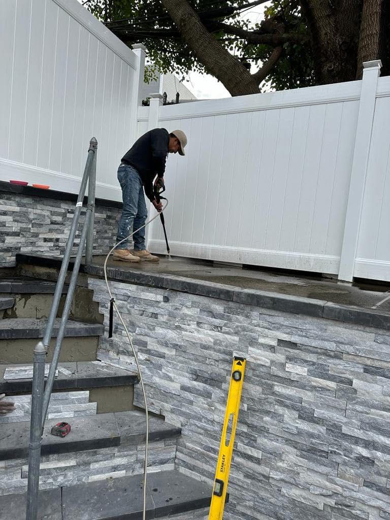 Veneer stone for retaining wall and power washing, North Bergen-NJ.