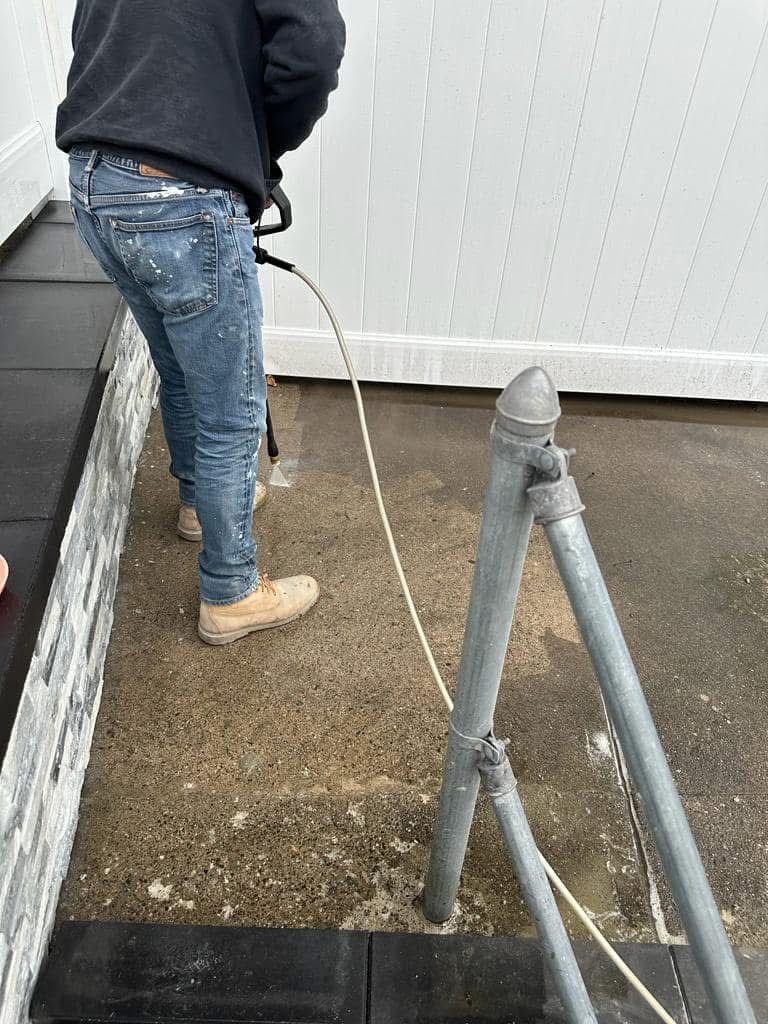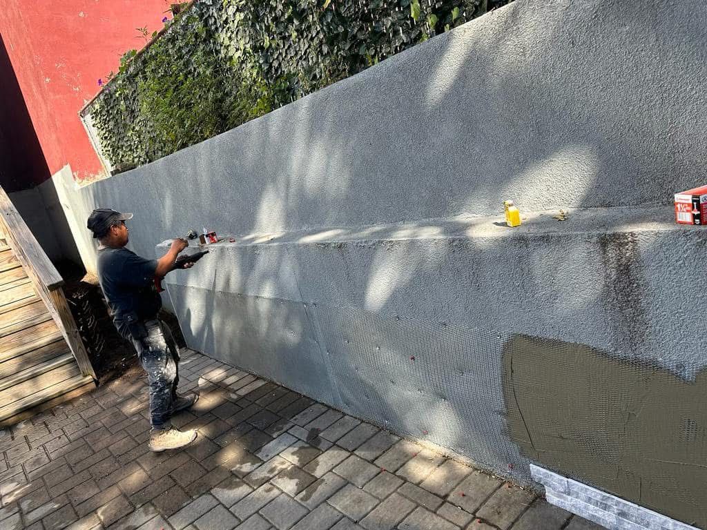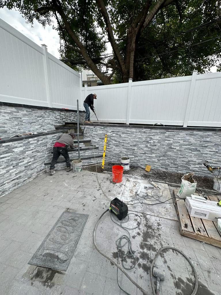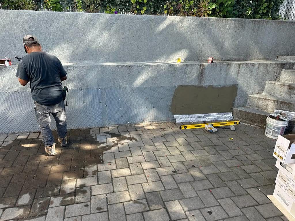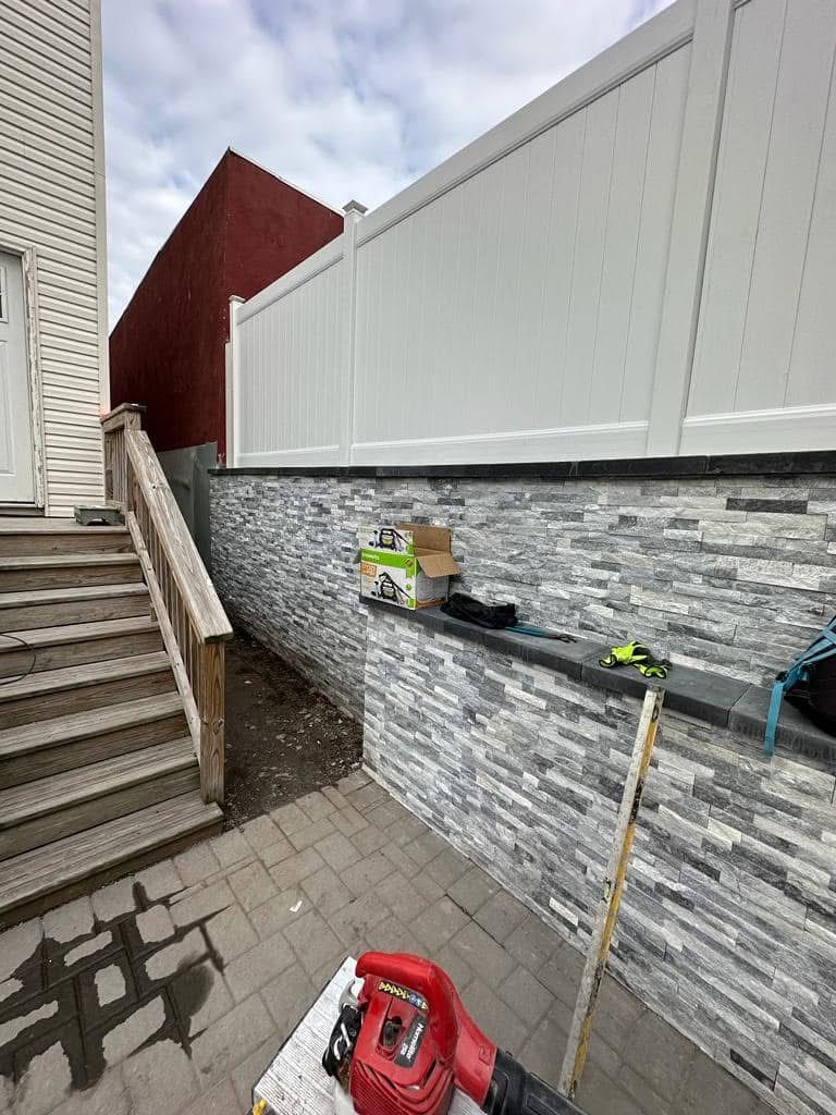 Veneer stone for retaining wall and power washing, North Bergen-NJ.